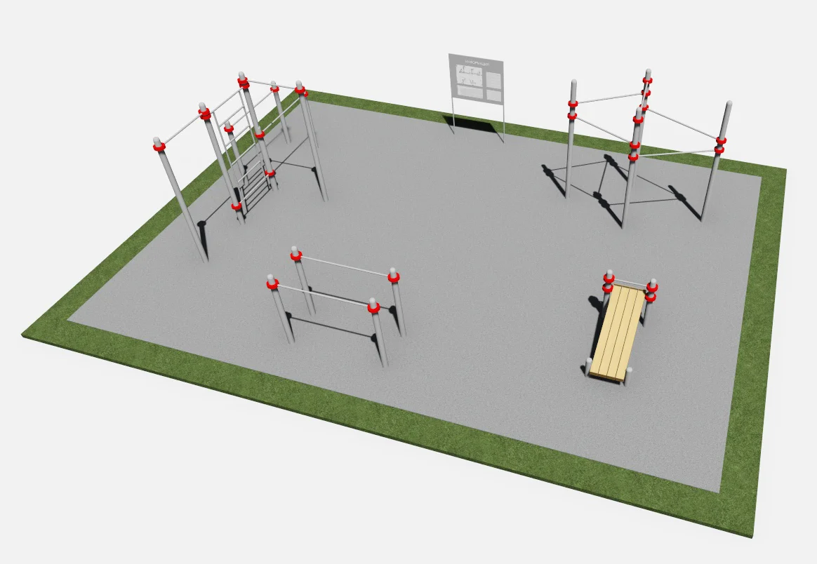 Спортивная площадка Воркаут 11 м × 8 м — это современный комплекс для занятий на открытом воздухе, предназначенный для тренировок с собственным весом. Комплекс включает в себя разнообразные тренажеры, которые позволяют выполнять широкий спектр упражнений для развития силы, выносливости, гибкости и координации. Идеально подходит для установки в парках, дворах жилых домов, учебных заведениях и спортивных центрах.